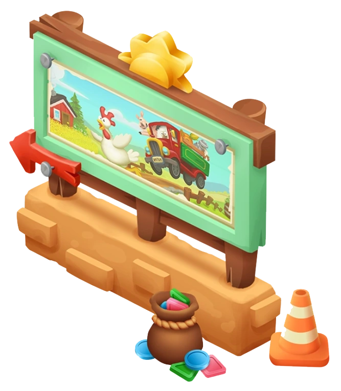 Das Tal besteht aus einer Art Dorf, durch das man mit seinem Lieferwagen fährt. Es gibt unterschiedliche Gebäude, die man anfahren kann. Ist man bei einem Gebäude angekommen, kann man dort auf der Farm hergestellte Produkte gegen Marken tauschen. Außerdem sieht man auch die Lieferwägen anderer Spieler, unter anderem die der eigenen Gemeinschaft.
