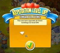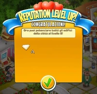 La reputazione si guadagna nella Città quando il giocatore soddisfa i Visitatori. E' del tutto equivalente ai Punti di esperienza che si guadagnano nella fattoria.
