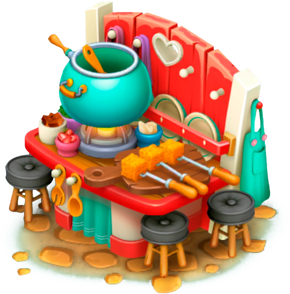 Пекарня • Дробилка • Молокозавод • Сахарный завод • Попкорница • Гриль • Печь для пирогов • Ткацкий станок • Швейная машинка • Печь для тортов • Рудник • Плавильня • Соковыжималка • Станок для приманок • Мороженица • Вязальщик сетей • Вареньеварка • Ювелир • Медогонка • Кофейный киоск • Бассейн с раками • Суповая кухня • Свечник • Цветочный магазин • Утиный салон • Конфетный автомат • Соусоварня • Суши-бар • Салатный бар • Бутербродная • Смузи-машина • Машинка для лапши • Лаборатория масел • Вок-кухня • Шляпник • Макаронная кухня • Киоск для хот-догов • Пончиковая • Тако-кухня • Омлетница • Чайная • Фондюшница • Мыловарня • Фритюрница • Консервный завод • Гончарная печь • Магазин ириса • Йогуртница • Рагушница • Кондитерская • Парфюмерная лавка • Вафельница • Кашеварня • Милкшейк-бар