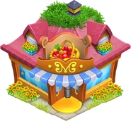 The grocery store is a service building unlocked at reputation level 1 in the player's town.