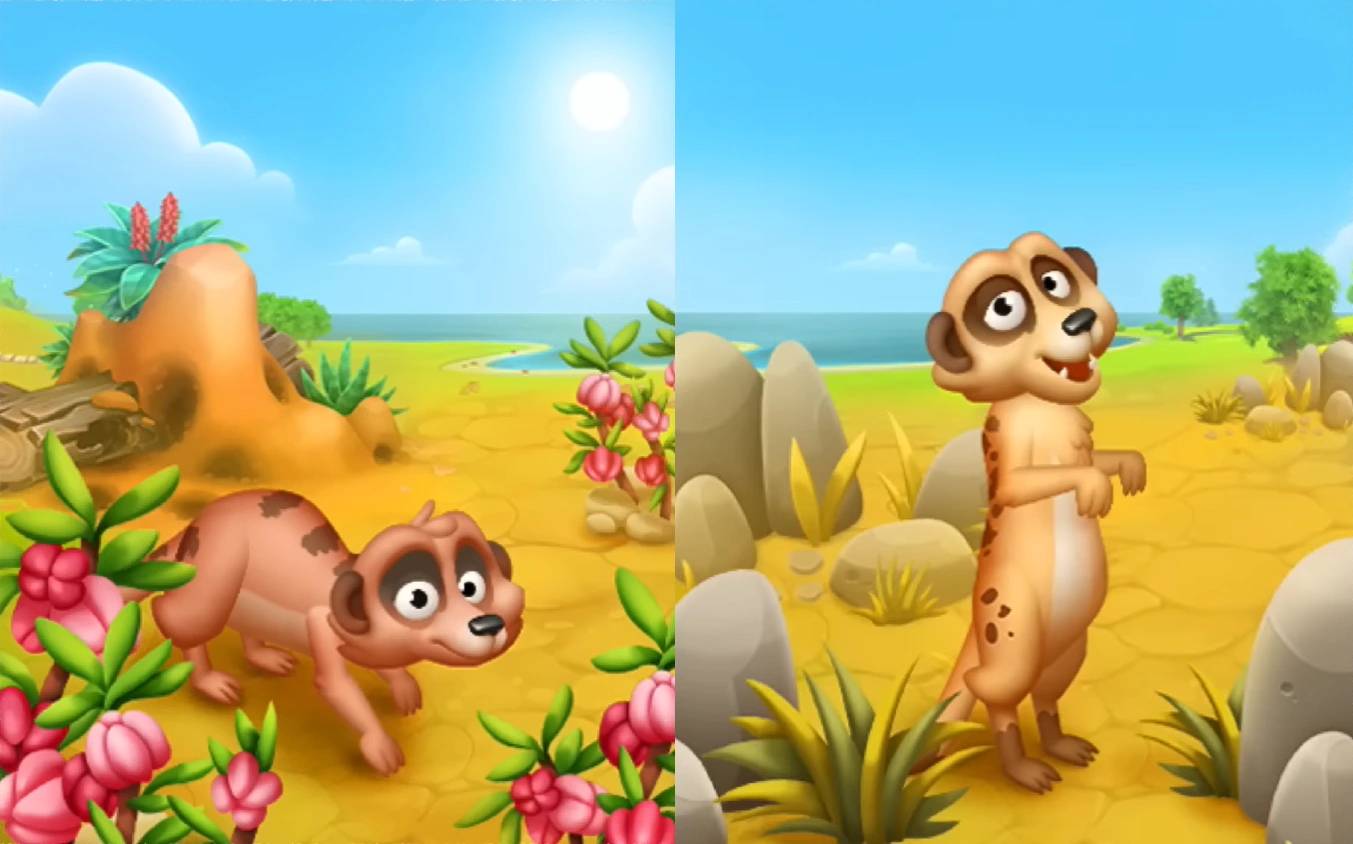 Once players have obtained a first meerkat, the puzzle for the second meerkat is unlocked. After both adult meerkats have been added to the sanctuary, the puzzle for one of the cubs is unlocked.