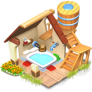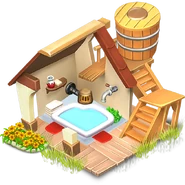 The appearance of the spa changes as the player upgrades it: